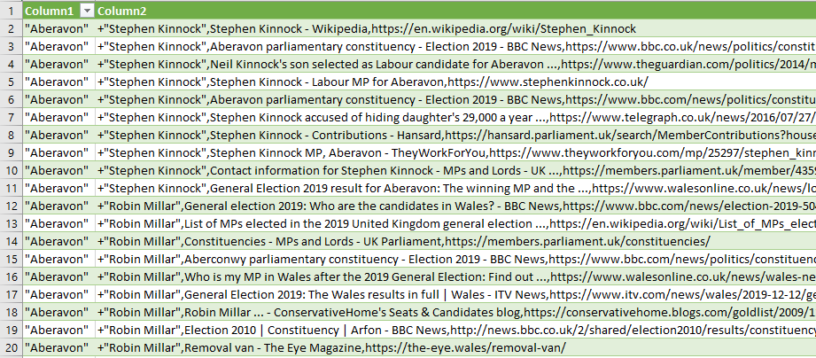 For example, if you have an input file with 8 names and another input file with 8 places, it will generate 64 searches, querying each name against each place you’ve provided.
